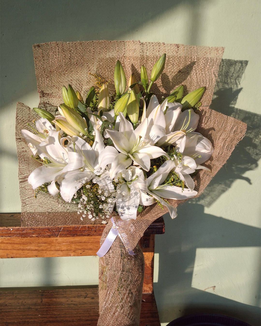 تضم الباقة زهرات ليليوم مفتوحة مع مجموعة من البراعم التي تتفتح لاحقًا لضمان استمرار جمال الباقة لأيام أطول، بالإضافة إلى لمسات من الجبسوفيلا والخضرة الطبيعية.